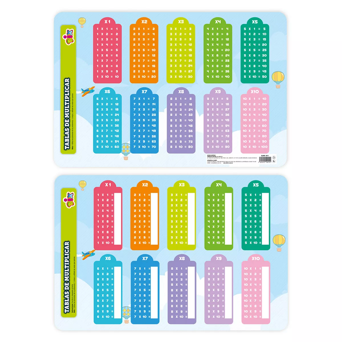 Mantel educativo (Chart) de 45×30 cm con diseño de tablas de multiplicar, ideal para apoyar el aprendizaje de letras en niños. Colorido, resistente y fácil de limpiar, perfecto para uso escolar o en casa. Todas las imágenes dentro de nuestro catálogo son con fines ilustrativos únicamente.