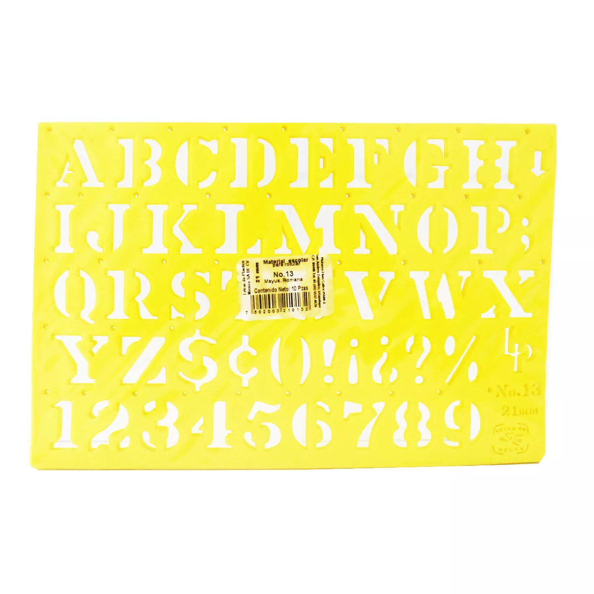 Plantilla plástica del nuero “13” Mayúscula Romana, color Amarilla, fabricado en plástico flexible, de 21 milimetros, Se puede utilizar con lápices, estilógrafos, plumas y PLUMÓNes. Atado de 10 pzas.