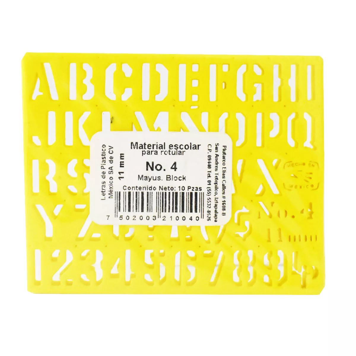 Plantilla plástica del nuero “4” Mayúscula Block, color Amarilla, fabricado en plástico flexible, de 11 milimetros, Se puede utilizar con lápices, estilógrafos, plumas y PLUMÓNes. Atado de 10 pzas.
