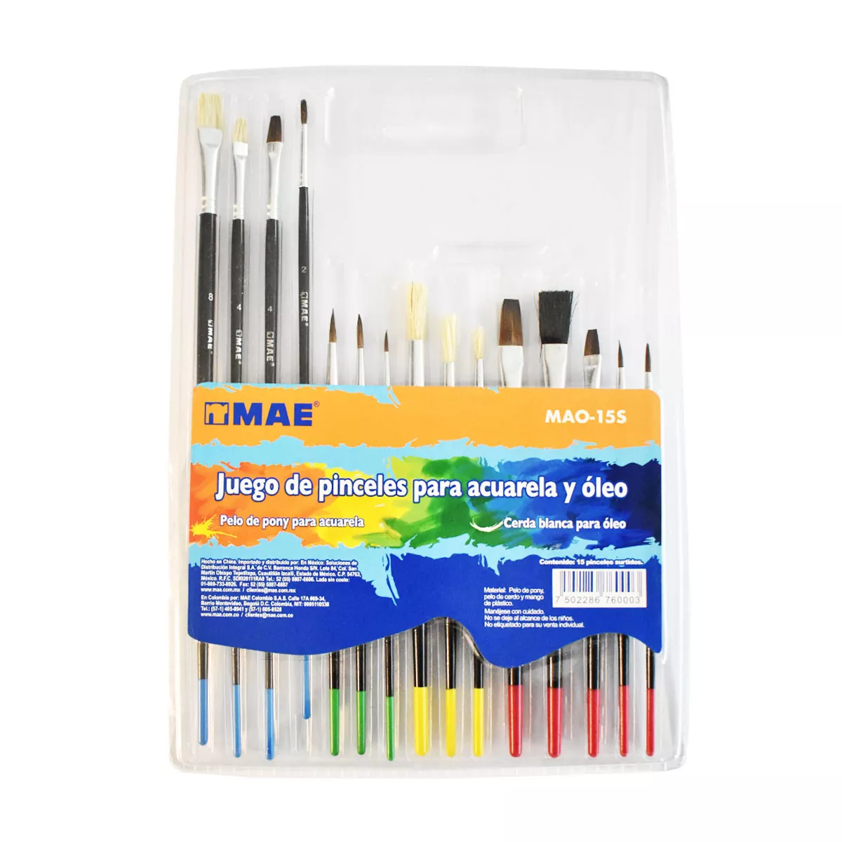 PINCEL ACUARELA Y OLEO 15 PIEZAS MAO-15S