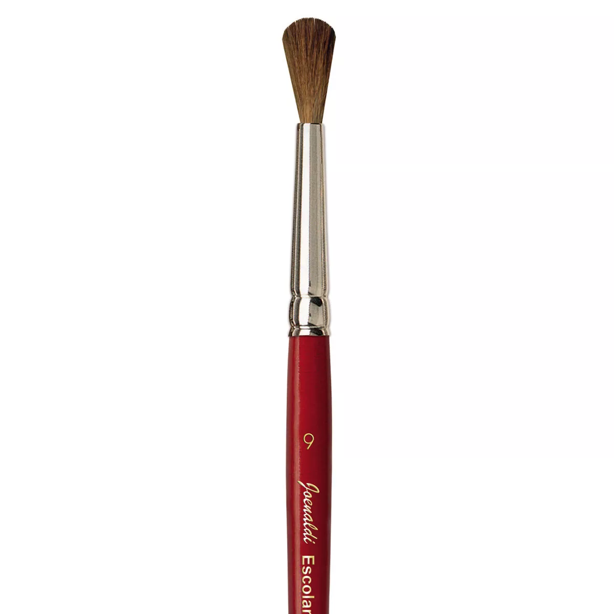 Pincel del N° 09 punta redonda, con cerdas de pelo de camello, cuenta con mango de madera ideal para pintar con pinturas de agua y acrílicas. Atado de 3 pzas.