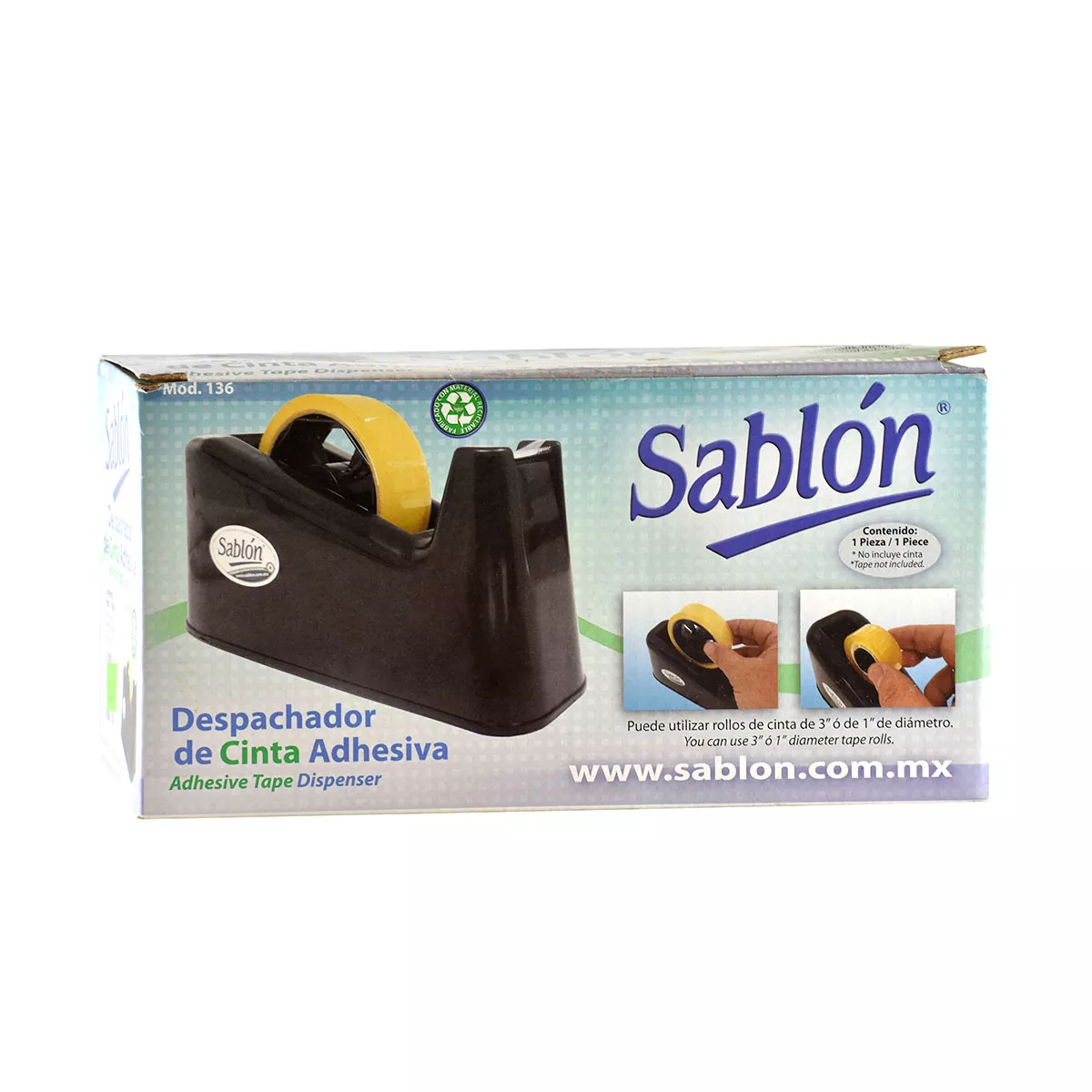 Despachador de cinta adhesiva chica y grande, color negro. Atado de 1 pzas.