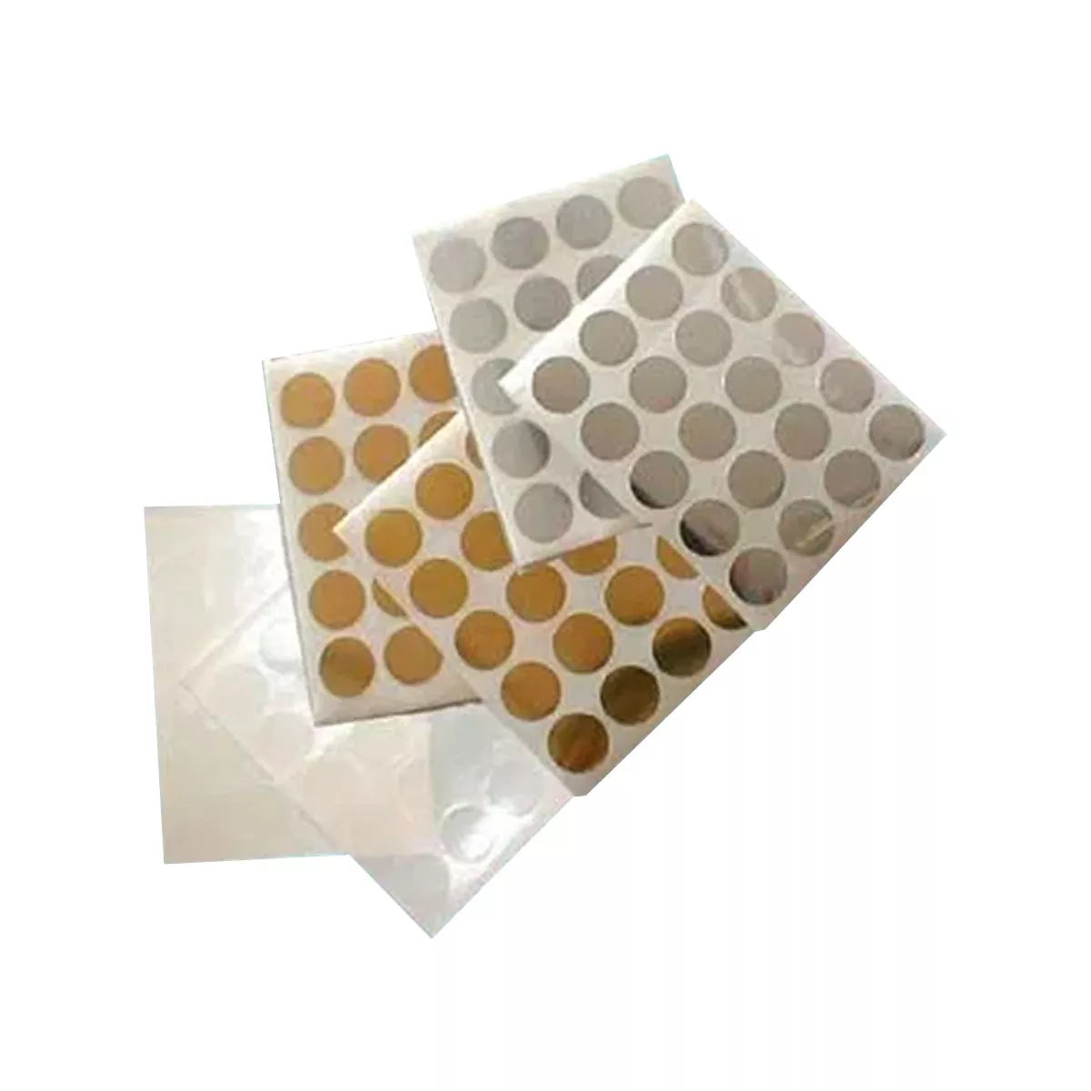 Etiquetas adhesivas circulares doradas con acabado metálico, ideales para resaltar documentos y decorar.