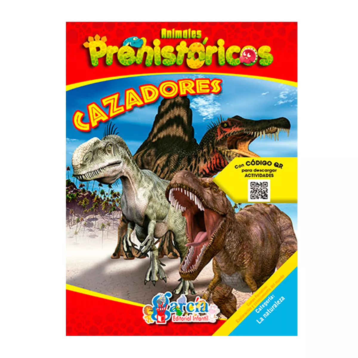 Libro informativo animales Prehistoricos, colección completa de 6 títulos, cada uno contiene 16 páginas ilustradas y a color sobre papel Couché. Atado de 3 pzas.