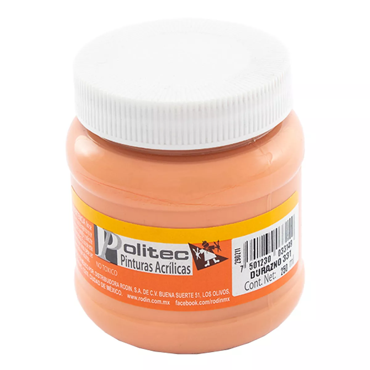 Pintura acrílica acabado mate 250ml color durazno ideal para superficies de lienzo, madera, papel y más. Ofrece colores vibrantes, de secado rápido y alta adherencia, perfecta para proyectos artísticos y manualidades.
