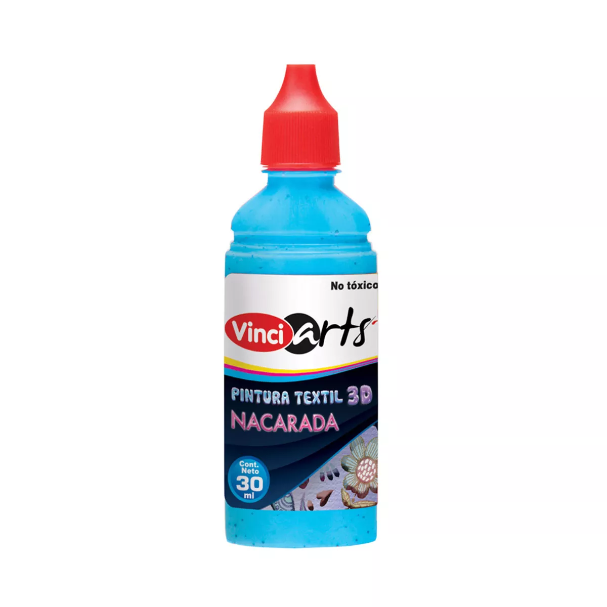 Registrate para ver los preciosPINTURA TEXTIL VINCI 30ML NACARADA AZUL CLARO ATADO DE 6 PZAS.