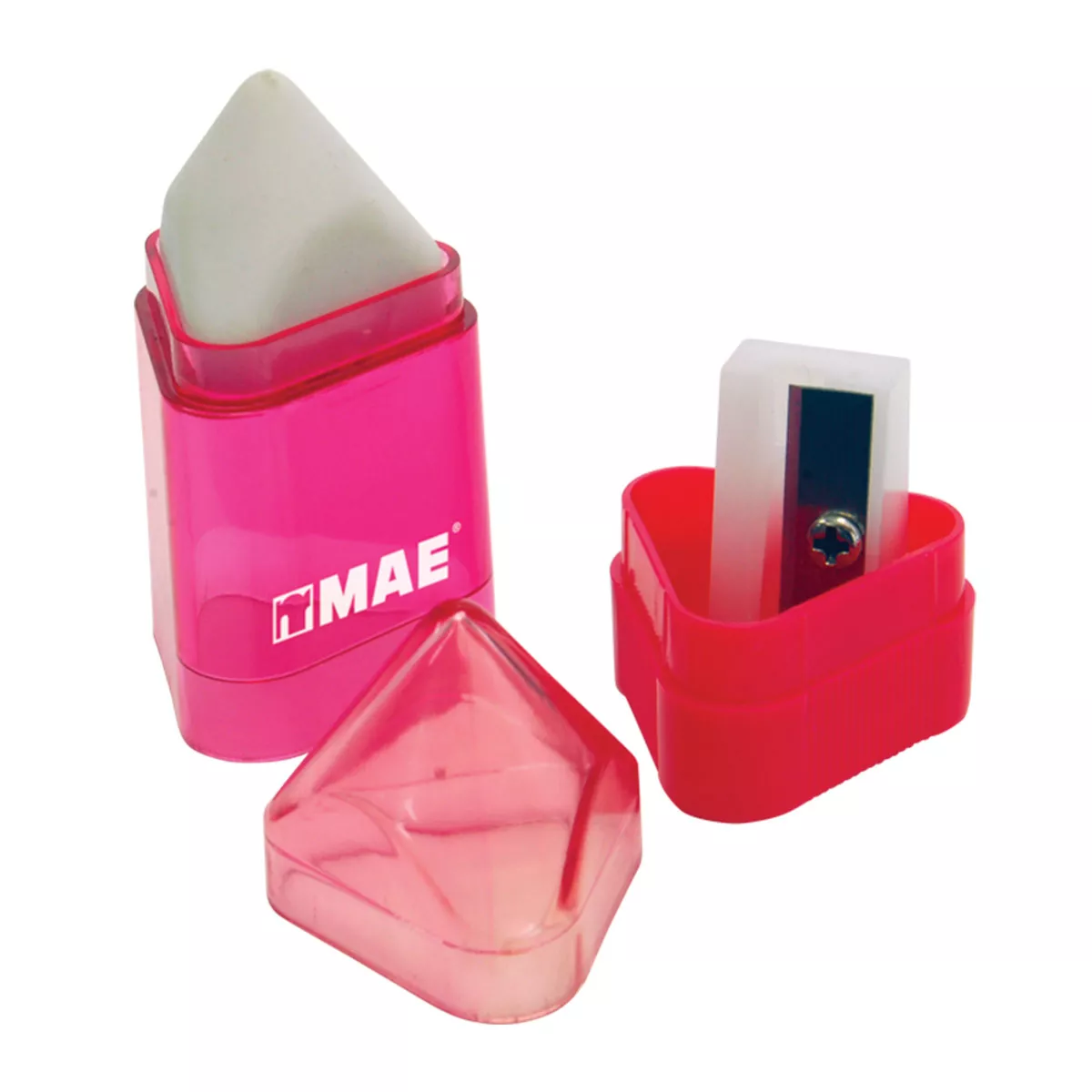 Sacapuntas con depósito y goma forma triangular caja con 24 piezas Atado de 1 pzas.