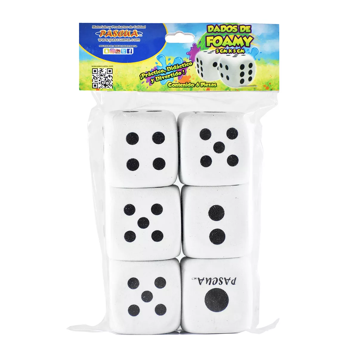 Dados elaborados con foamy , Medidas de 5 x 5 centímetros , disponible en color blanco , paquete con 6 piezas Atado de 1 pzas.