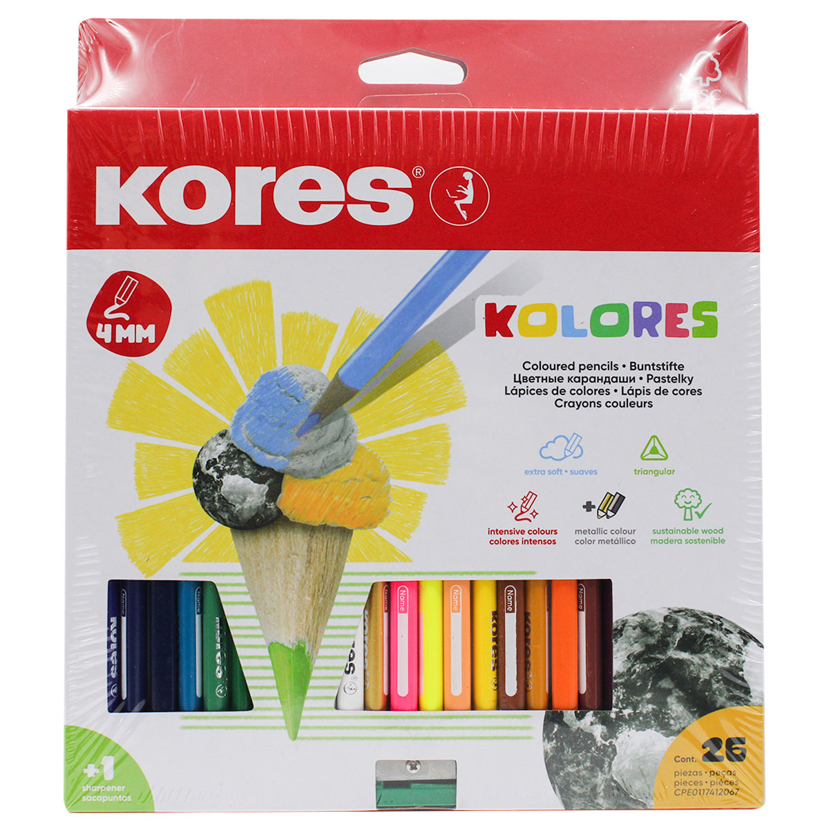 Los Colores Triangular Kores 4mm C/26 son perfectos para todo tipo de proyectos artísticos. Con su forma triangular, proporcionan un agarre cómodo y ergonómico, asegurando mayor control y precisión. Este set incluye 26 colores vibrantes, ideales para ilustraciones, detalles finos, sombreado y coloreado. Los lápices tienen una punta de 3mm que permite trazos más detallados o áreas amplias. Son una excelente opción para artistas, estudiantes y aficionados al dibujo.