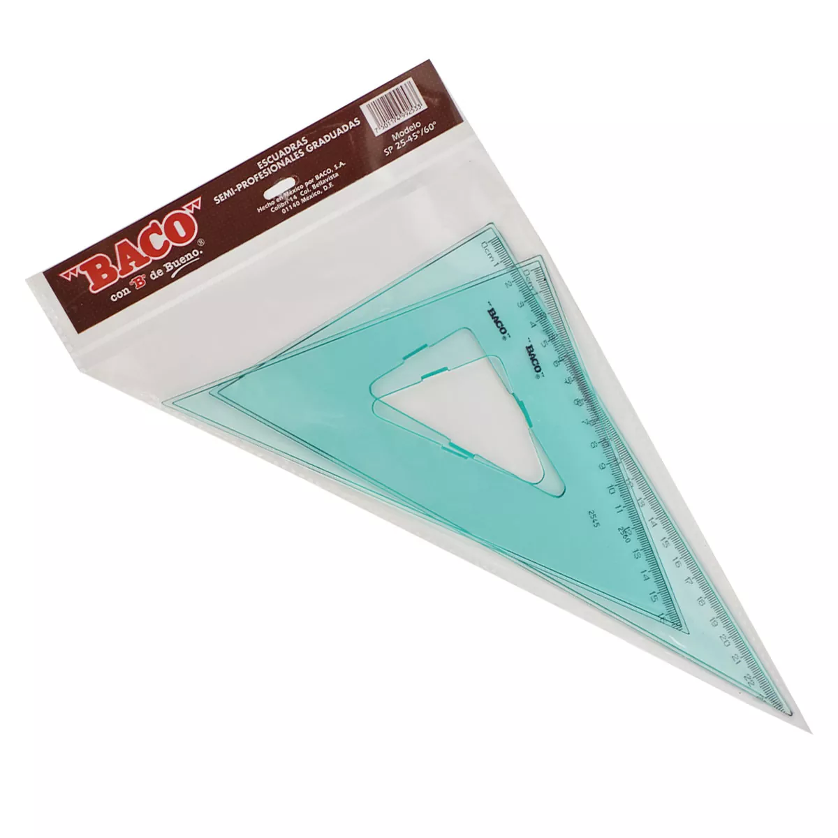 JUEGO ESCUADRAS CON BISEL CON GRADUACION 2045 ATADO DE 3 PZAS.