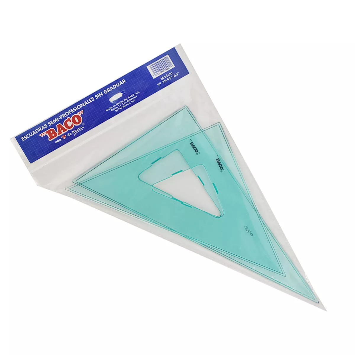 JUEGO ESCUADRAS SIN BISEL SIN GRADUACION 1645 ATADO DE 3 PZAS.