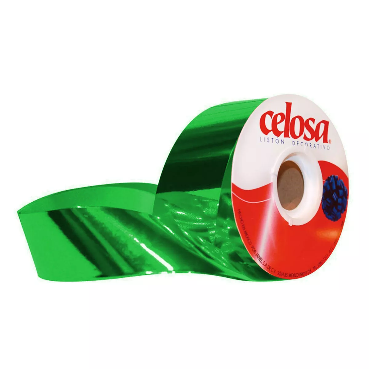 Listón Celosa metálico No.22 en color verde bandera, con acabado brillante que resalta en cualquier decoración. Ideal para envolver regalos, elaborar moños, decorar fiestas, piñatas o proyectos creativos. Su tono vibrante y textura metálica lo hacen perfecto para dar un toque llamativo y alegre a cualquier ocasión. Todas las imágenes dentro de nuestro catálogo son con fines ilustrativos únicamente.