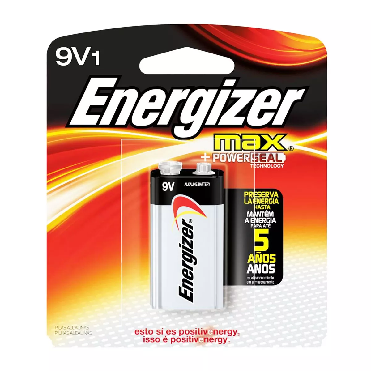 Pila alcalina Energizer Max de 9V, ideal para dispositivos que requieren potencia constante como detectores de humo, micrófonos, juguetes electrónicos y equipos médicos. Ofrece un rendimiento duradero y seguro, con tecnología que previene fugas y garantiza una vida útil prolongada, incluso en almacena.