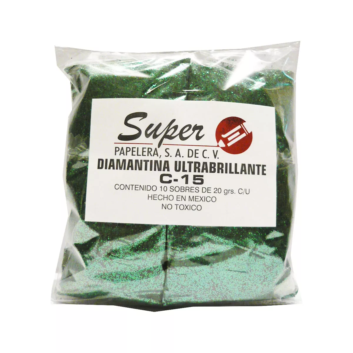 DIAMANTINA FINA 20GRS VERDE BANDERA ATADO DE 10 PZAS.