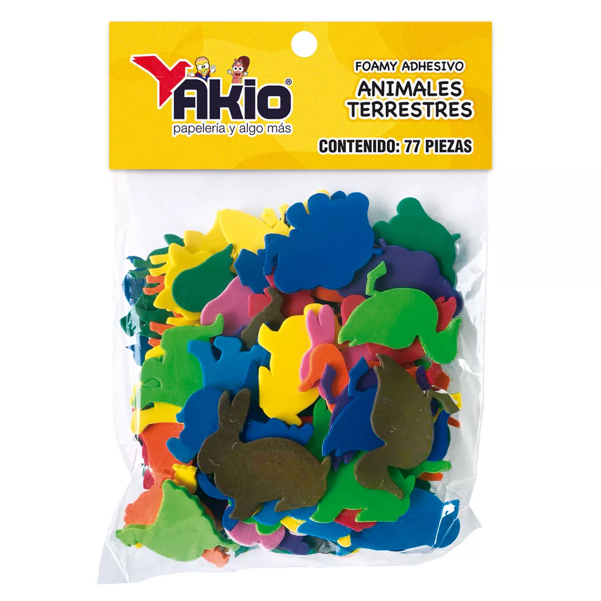 Foamy simple de colores con adhesivo contiene 77 piezas. Modelo: ANIMALES TERRESTRES.