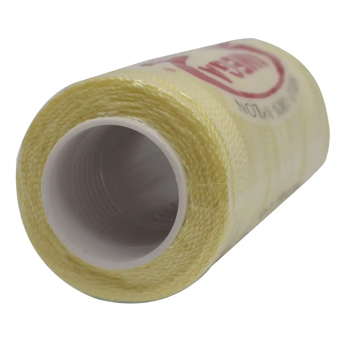 Hilo nylon Omega, resistente y duradero, ideal para costura, manualidades, bisutería y más. Color amarillo claro, excelente calidad para múltiples usos.