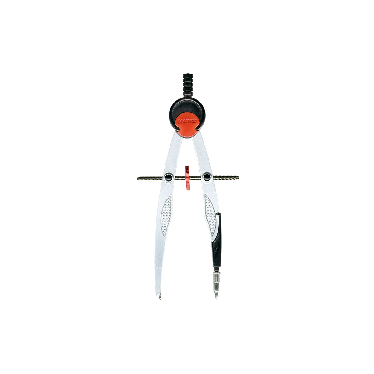 Juego de Geometría con compas metálico de precisión, regla de 30 cm , transportador 180°/12 cm, escuadras 60° 45°/21 cm, 1 goma esentials y sacapuntas de metal Atado de 3 pzas.