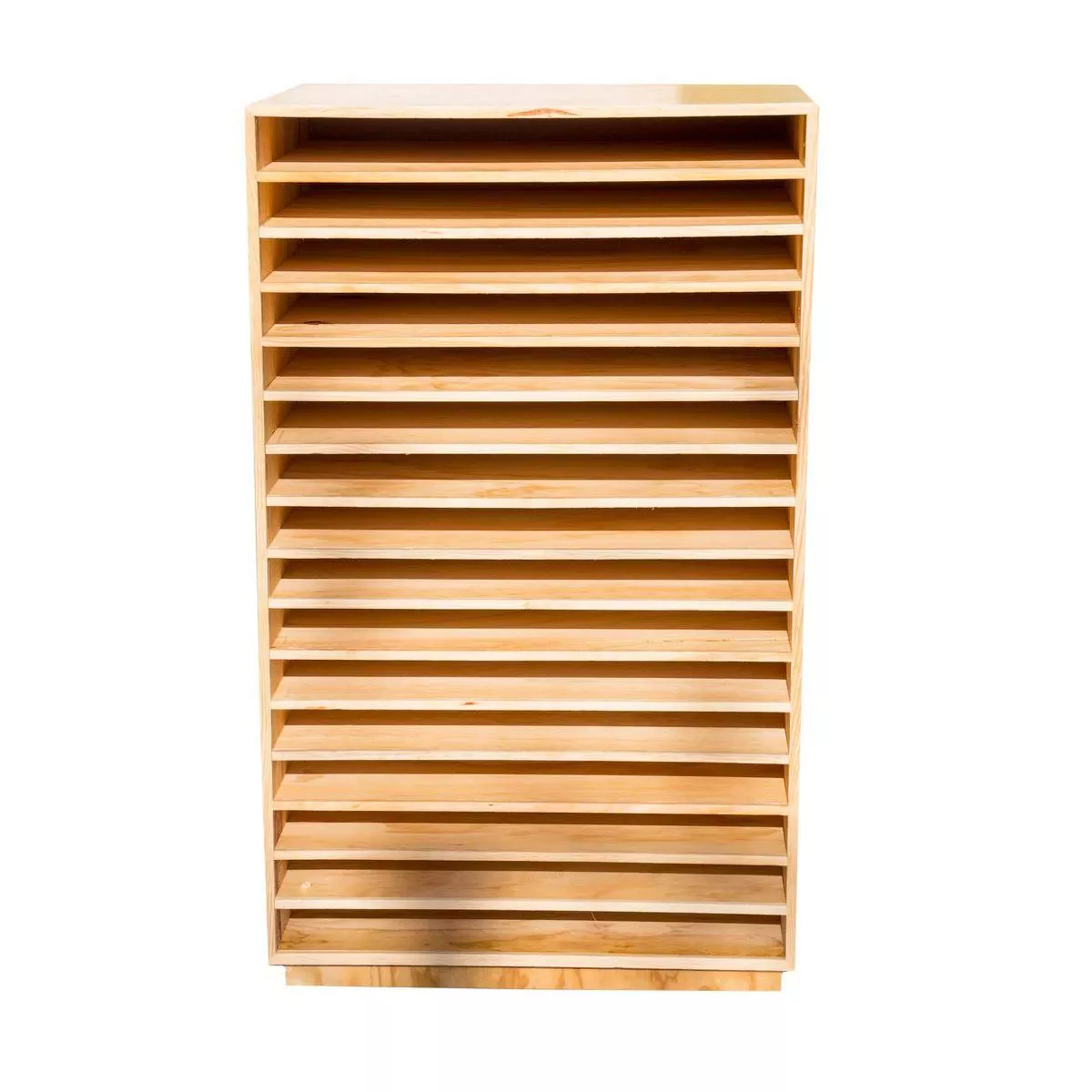 Este mueble está diseñado para almacenar papel extendido como; cartulina, cromo, micas, poster, etc. Es ideal para espacios grandes, debido a su tamaño, cada entrepaño tiene un almacenamiento de 100 piezas. Atado de 1 pzas.