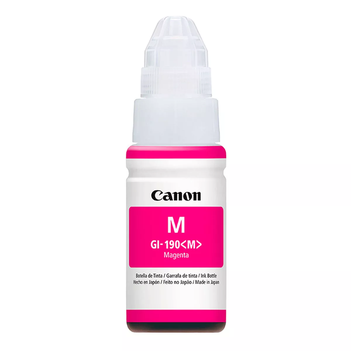 La tinta Canon GI-190 en color magenta está diseñada especialmente para impresoras con sistema de tinta continua, ofreciendo impresiones de alta calidad con colores vivos y definidos. Su fórmula original garantiza un flujo constante y uniforme, ideal para trabajos de oficina, escolares o uso doméstico.