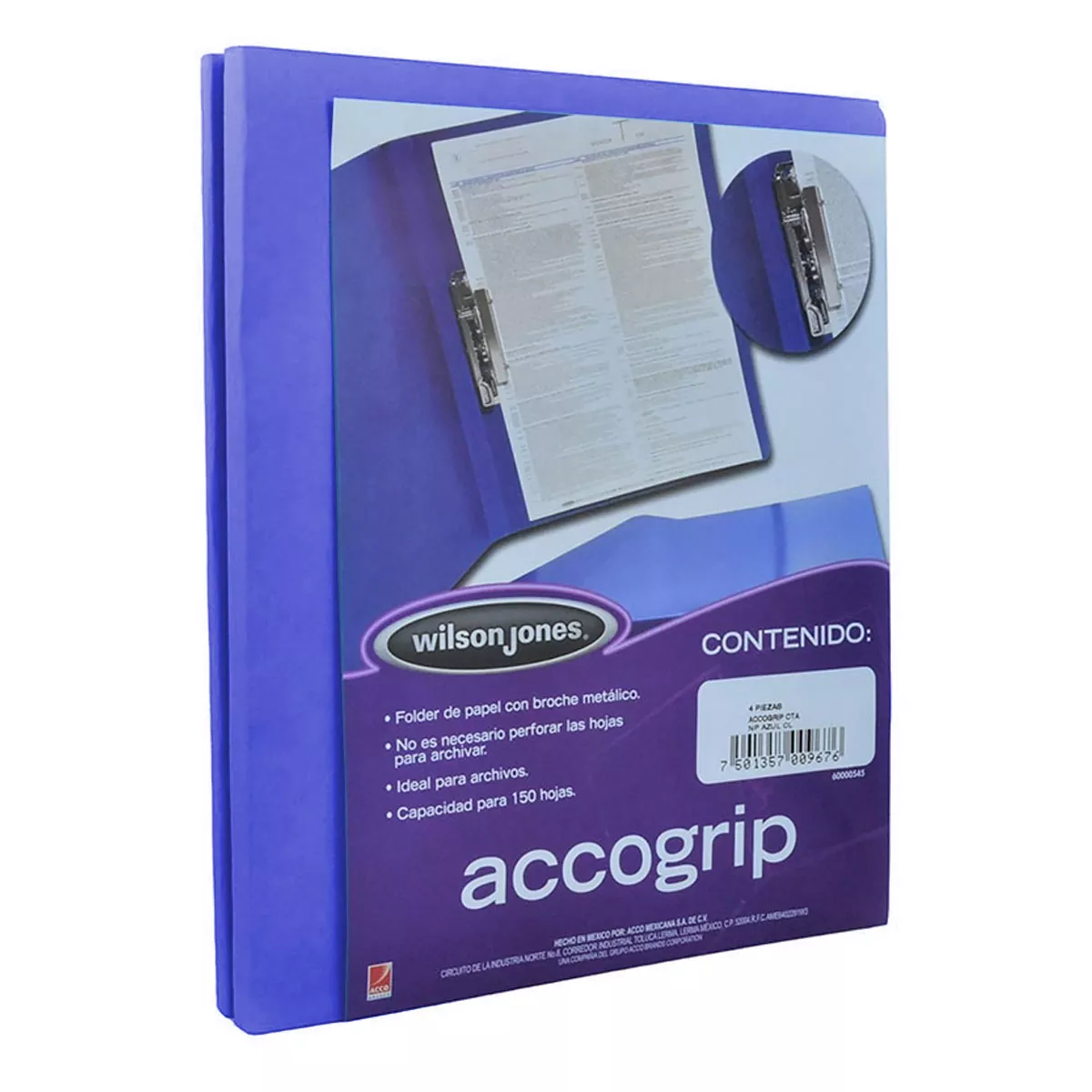 Registrate para ver los preciosFOLDER CARTA ACCOGRIP PALANCA AZUL OBS ATADO DE 4 PZAS.