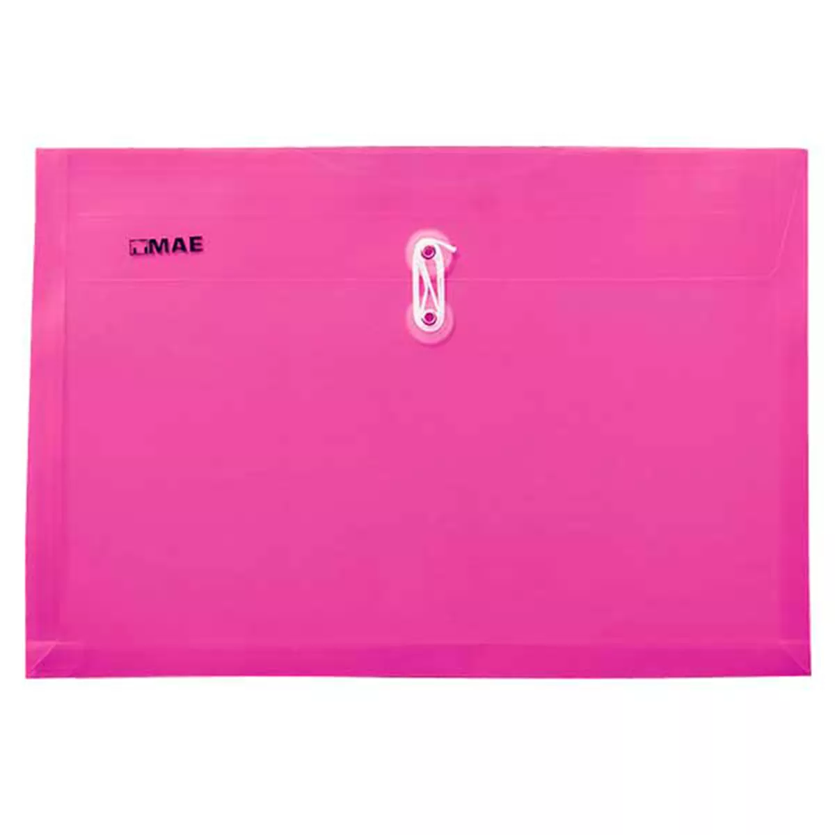 Sobre oficio horizontal con hilo, plastificado de colores sólidos, con 12 colores diferentes. Atado de 1 pzas.