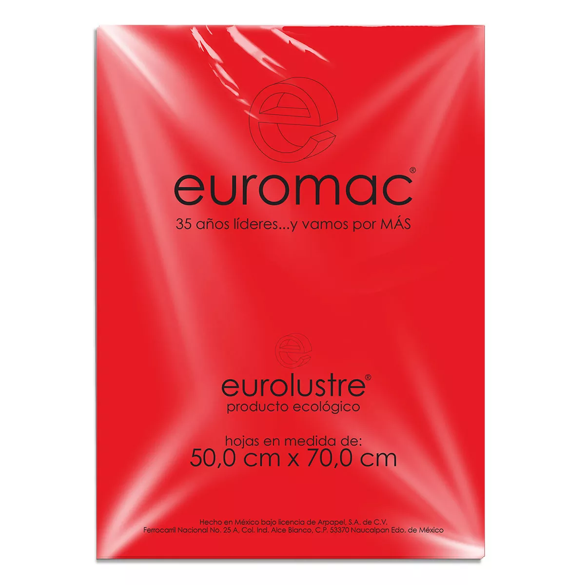 Paquete con 25 hojas de papel lustre en color rojo. Brillante y flexible, ideal para manualidades, forrado y proyectos escolares.