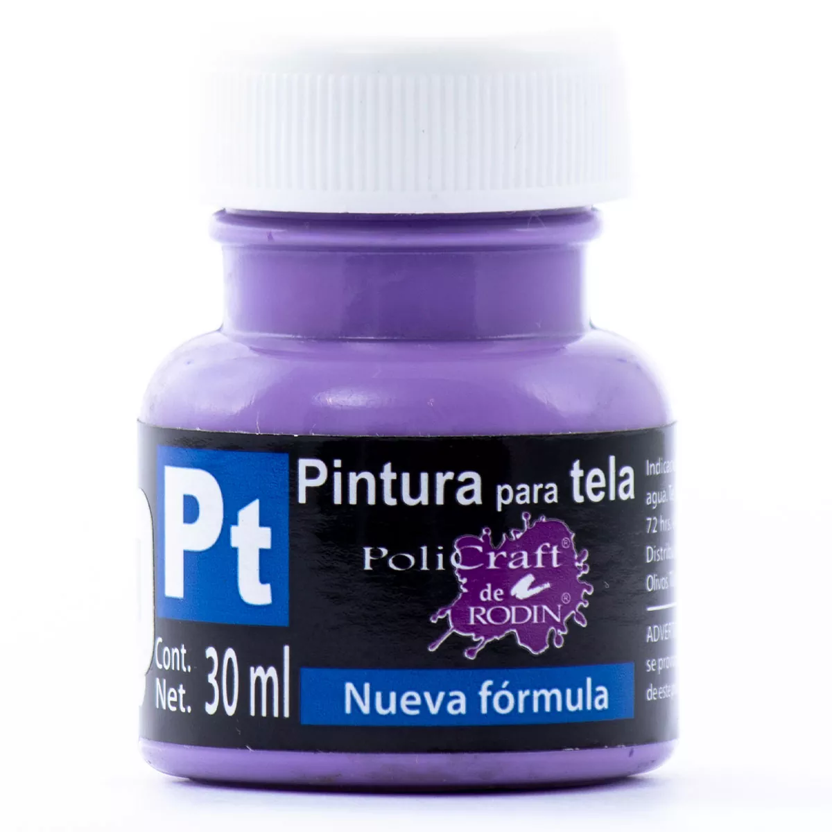 Pintura para tela Policraft de 30 ml – color morado. Color intenso y duradero. Ideal para decorar prendas, telas y accesorios. Acabado suave, flexible y lavable una vez seco.